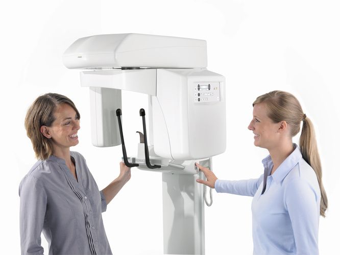 Прикусной валик, подбородник и пучки лазерного излучения обеспечивают четкую центровку пациента. Зеркало помогает оператору выполнять корректное и быстрое позиционирование, а дополнительный подголовник обеспечивает еще большую надежность для пациента. Кроме того, приводная каретка может перемещаться вертикально для простоты размещения высоких пациентов и пациентов в инвалидной коляске.