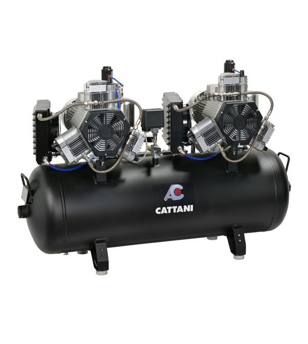 Компрессор стоматологический 2х3 цилиндра для 7 установок (с 2 осушителями (без кожуха) 476 л/мин, 1-фазный, ресивер 150 л | Cattani (Италия)