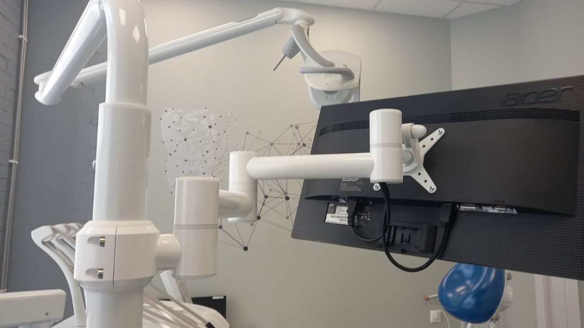 Есть возможность наклона монитора (на себя, от себя).Фото примера установки кронштейна на стоматологическую установку Kavo Estetica E30